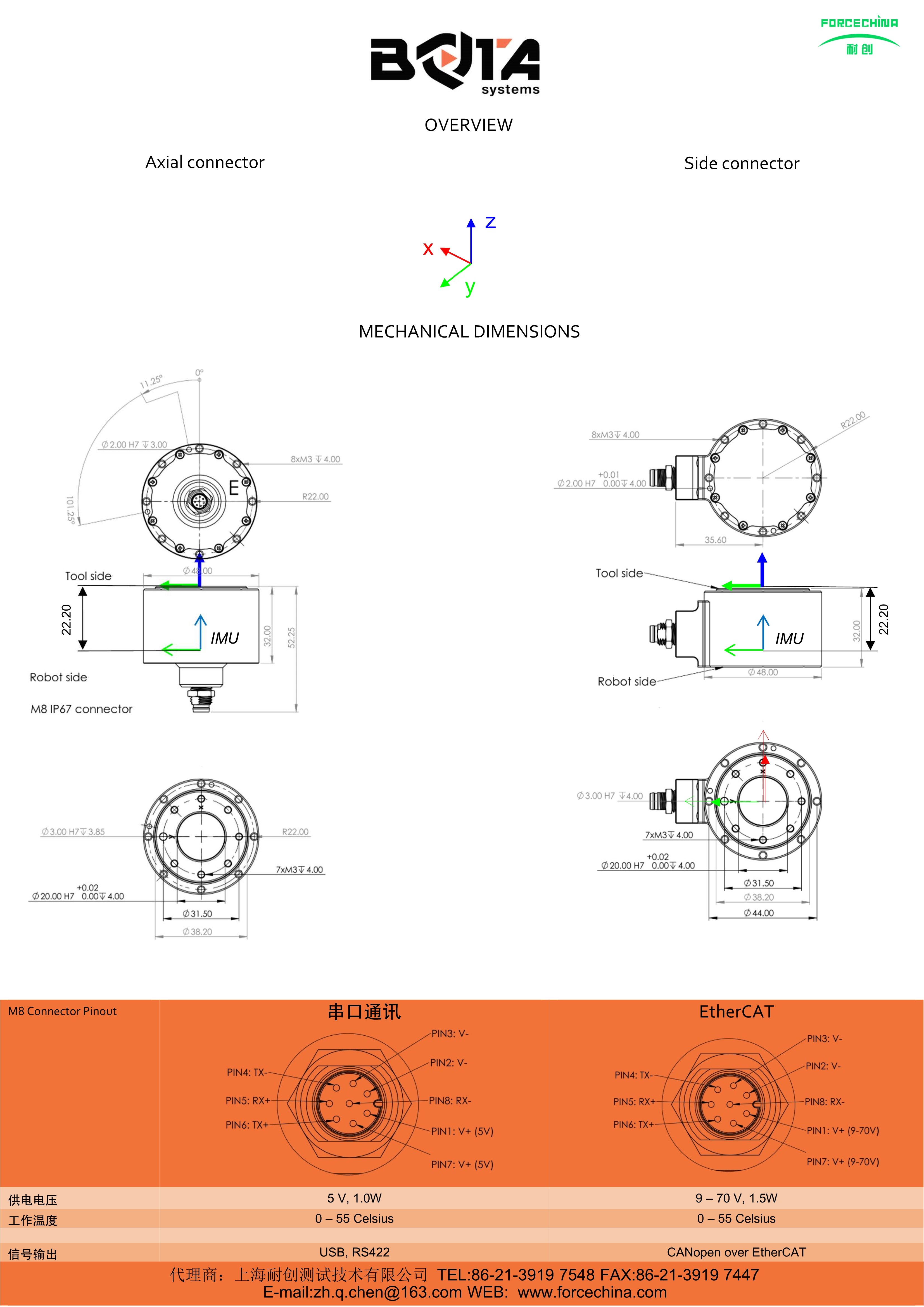 USB,RS422 800Hz采樣率;防護等級 Dustproof and water-resistant