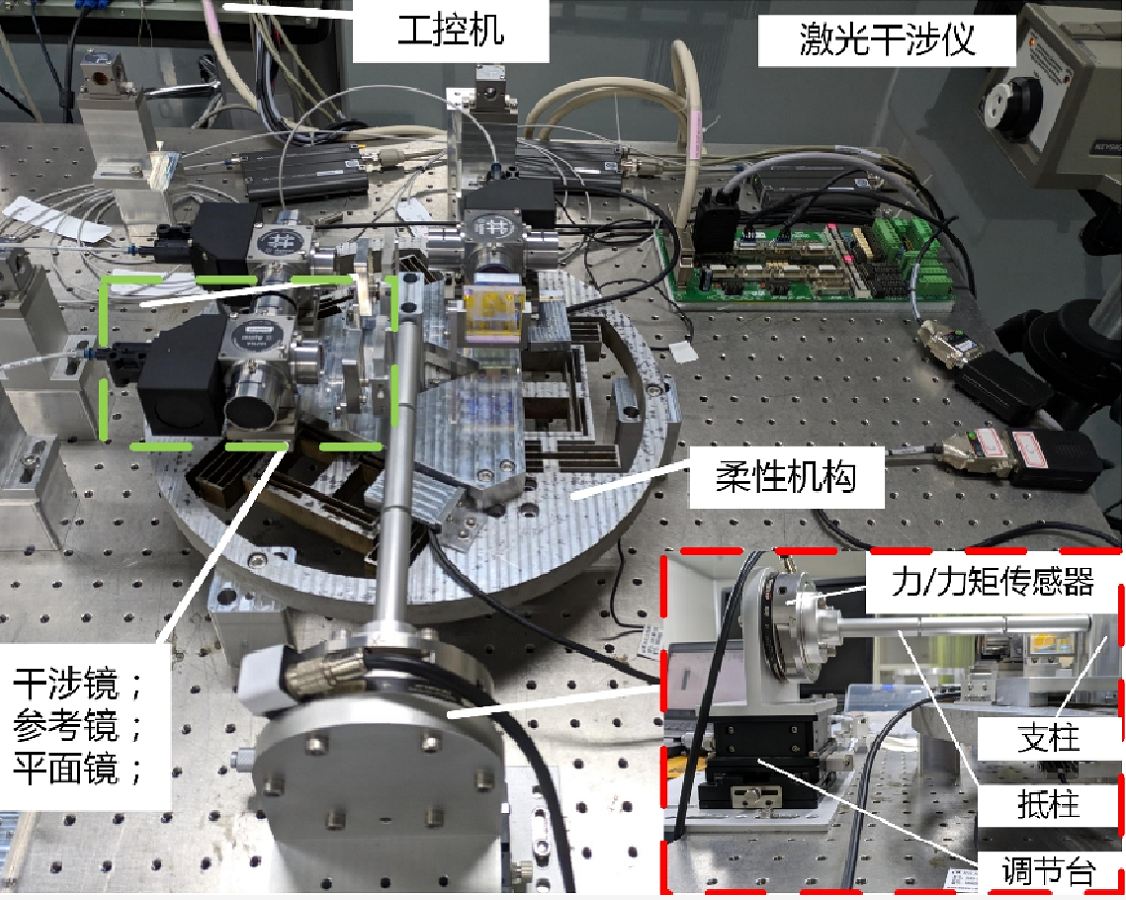 性機構(gòu)上的支柱相連接,從而測得移動調(diào)節(jié)臺時產(chǎn)生的力矩。實驗方案是調(diào)動三坐標(biāo)的位移,來得到三維力,通過傳感器得出三維力的大小。實驗過程是由實驗