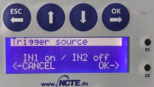 按上下鍵選擇IN1 ON/ IN2 OFF