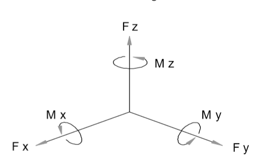 力/力矩傳感器設計用于【沿著定義的軸向,通常標記為X,Y和Z】測量力和力矩。這些力/力矩傳感器由1~6個通道;6通道的力/力矩傳感器包含三個通道的力Fx,Fy,Fz和三個通道的力矩Mx,My,Mz;