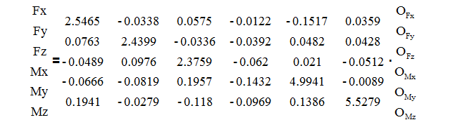OFx = K1·Fx + K2·Fy + K3·Fz + K4·Mx + K5·My + K6·Mz