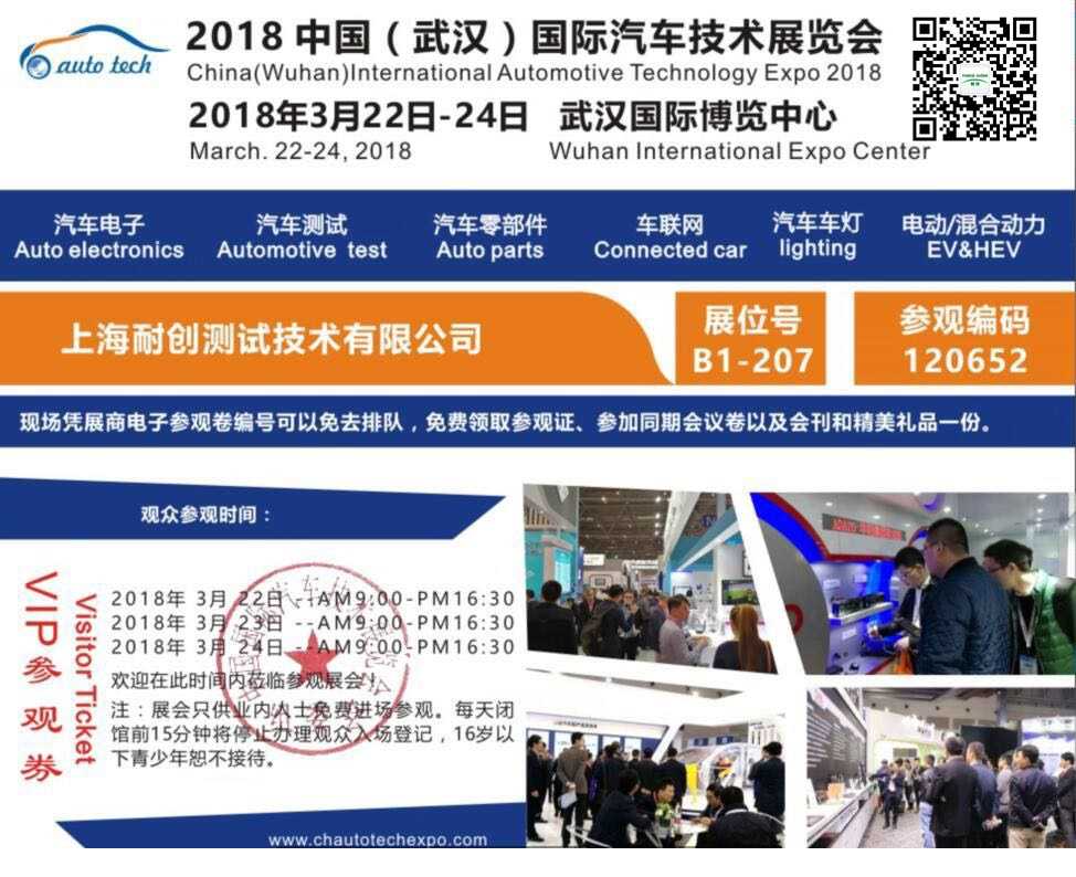 2018中國(武漢)汽車測試測量技術展覽會是第五屆中國國際汽車技術展覽會(簡稱Auto Tech)六大專題展之一,將于2018年3月22日-24日在武漢國際博覽中心盛大舉辦,將和車聯網技術展、新能源汽車技術展、汽車輕量化技術展以及汽車電子技術展等聯袂呈現。屆時將匯集全球500多家領先參展商向廣大汽車工程師展示先進的測試技術產品。同時組委會邀請諸如東風、神龍、長安、福特、比亞迪、上汽、吉利、通用、一汽、北汽、廣汽、奔馳、寶馬、大眾、豐田、博世、大陸、麥格納等汽車OEM廠商及Tier 1 汽車零部件供應商的上萬名采購、技術工程師匯聚一堂,參加展會。